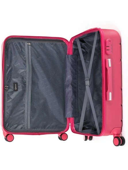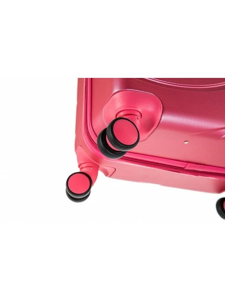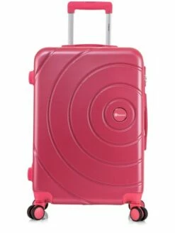 Maleta de viaje tamaño cabina color rosa, con medidas 55x38x20 cm. (incluye asas ruedas etc.).