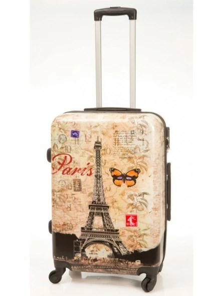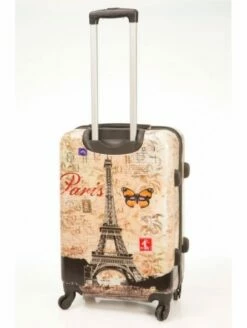 Maleta de viaje, con medidas 55x38x23 cm, peso es de 2,5kg, y capacidad de 38 Litros, con motivo de torre Eiffel